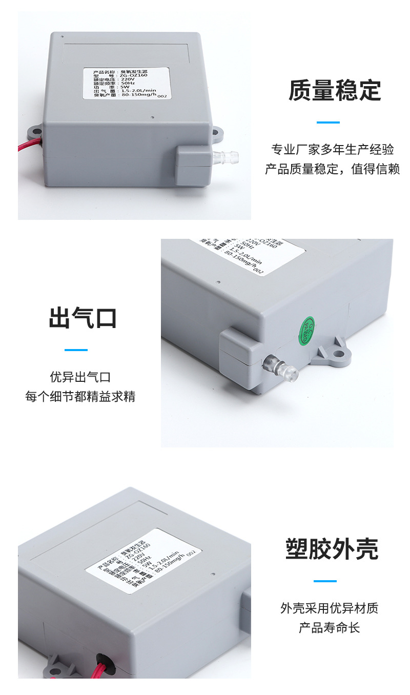 ?一體化整合了臭氧驅動電路、臭氧發生管、氣泵,結構緊湊、設計合理、統配性強
